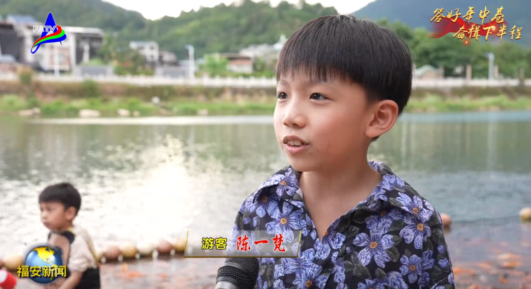 游客 陈一梵 :我们刚才还下水摸鱼,去喂鱼,觉得很开心,也很凉爽。
