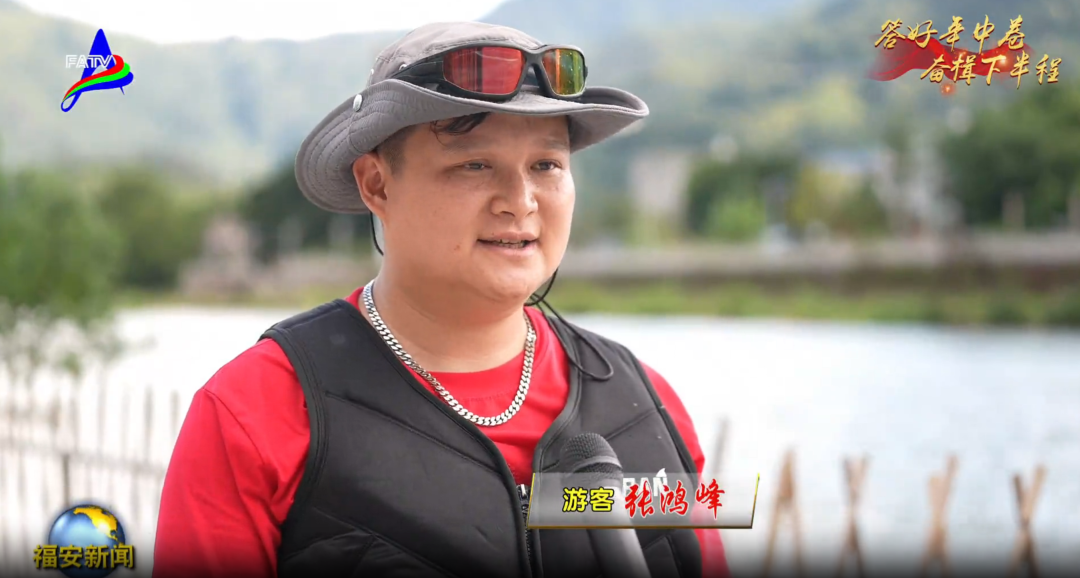 游客 张鸿峰:河水很漂亮,水又干净,我们组织一些人来这玩,在水域中玩水,水温刚好很清凉,来这游玩很舒服,不会感觉到很晒。
