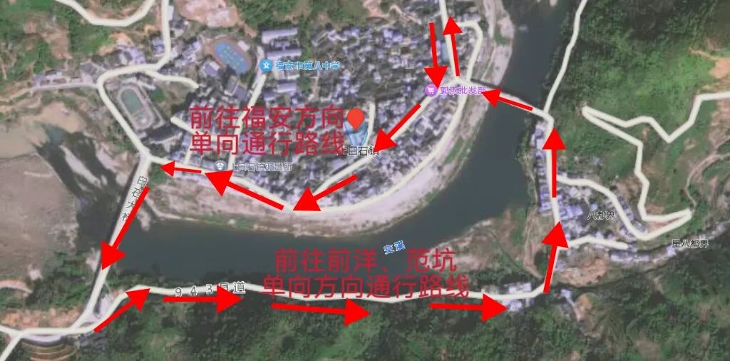 春节期间,上白石镇主干道将实施分流并执行单向通行规则,前往福安方向车辆统一由镇区通过;前往前洋、范坑方向的车辆统一改为新桥头向八都界(旧路)方向单向通行。