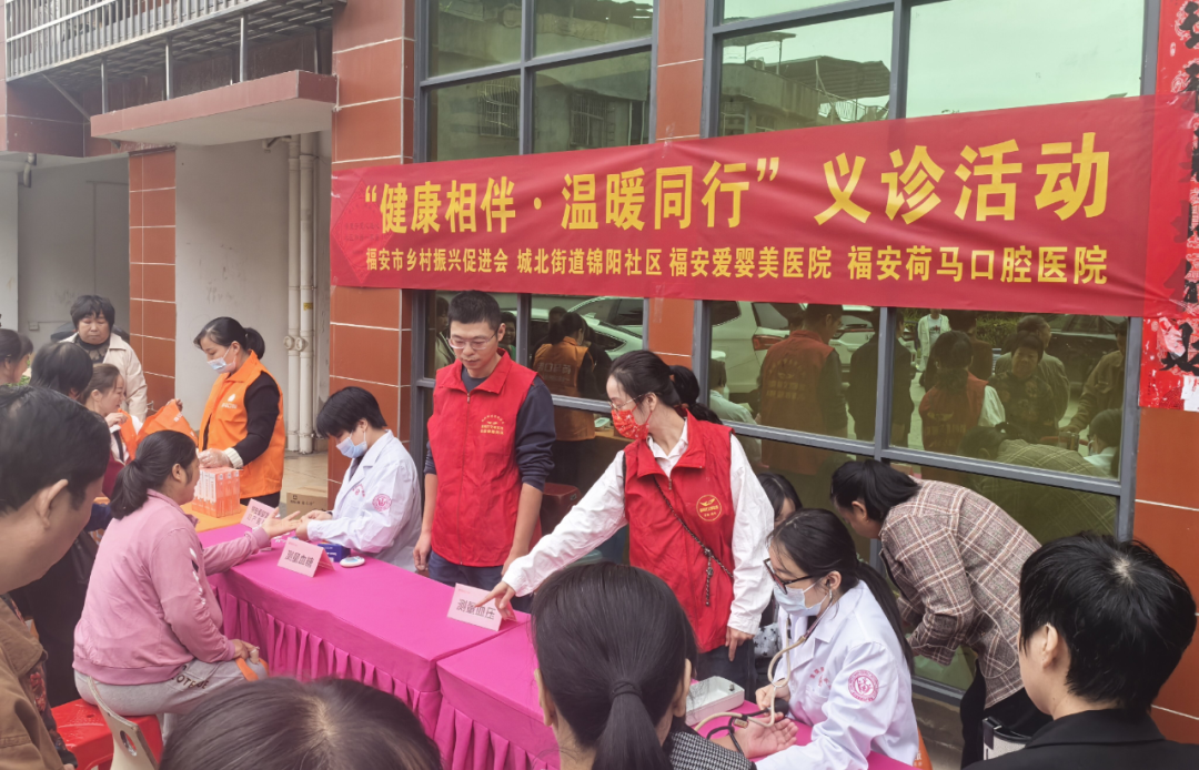 10月30日,为弘扬中华民族尊老、敬老、爱老的传统美德,切实关注社区老年居民的身体健康,福安市乡村振兴促进会带领爱婴美医院、荷马口腔医院,走进城北街道锦阳社区学府佳苑小区,开展“健康相伴,温暖同行”共建义诊活动,为小区老年人送上一份贴心的健康关怀。
