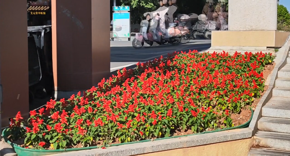城区园林绿化外包单位负责人 张运东:为了打造这个花境的立体感,我们有填了土方,做了一个微地形,这样能看出,植株的层次感,像新几内亚凤仙,它花期能到明年5月份,五色梅的话,基本上每年它一年四季都在开花,都会有花苞。