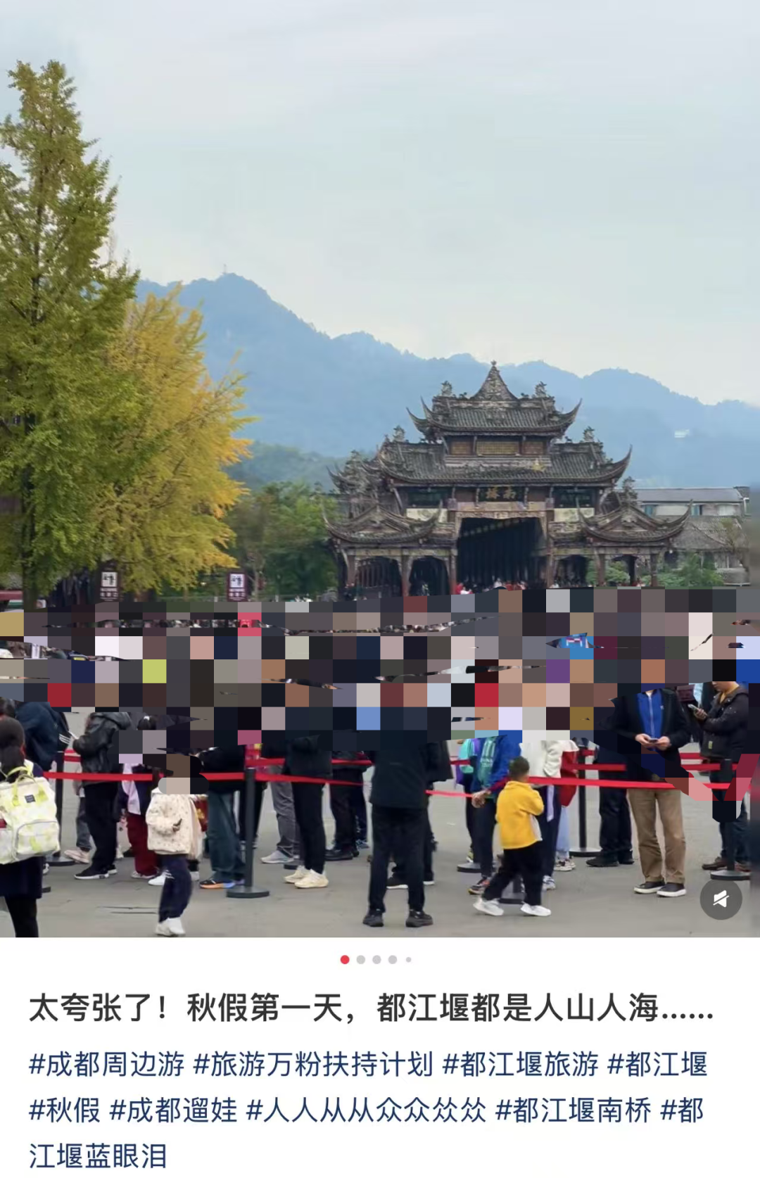 青城山都江堰、九寨沟、毕棚沟、环球影城等各大景区都已被“占领”,高速都堵红了。