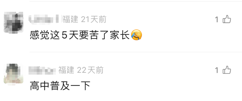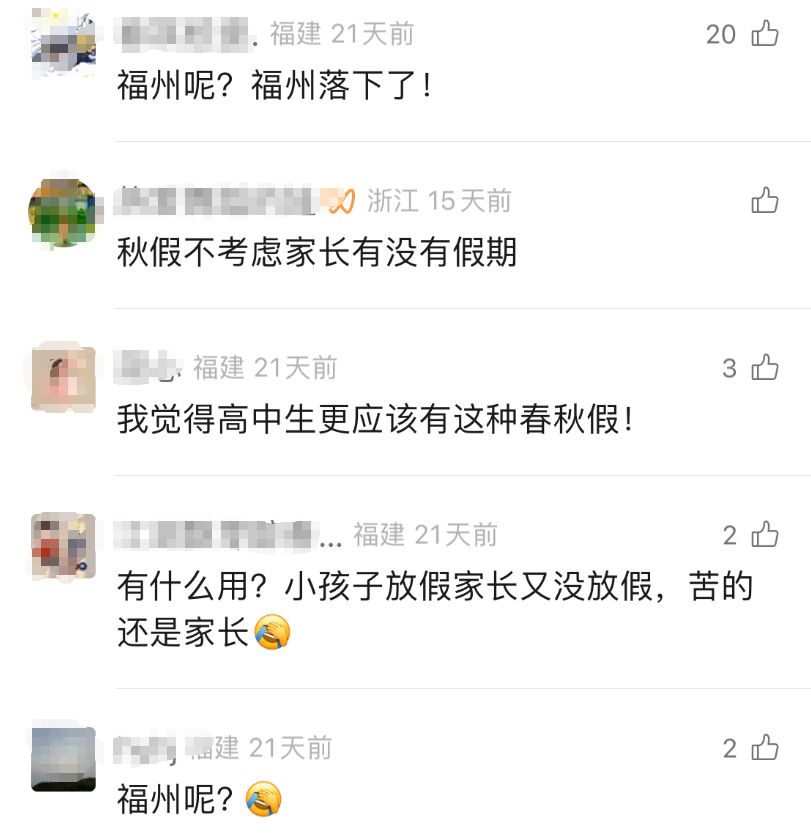 此前,本报发布的春秋假相关视频的评论区中,也有不少网友呼吁“福州跟上”“高中生应该有这种安排”!