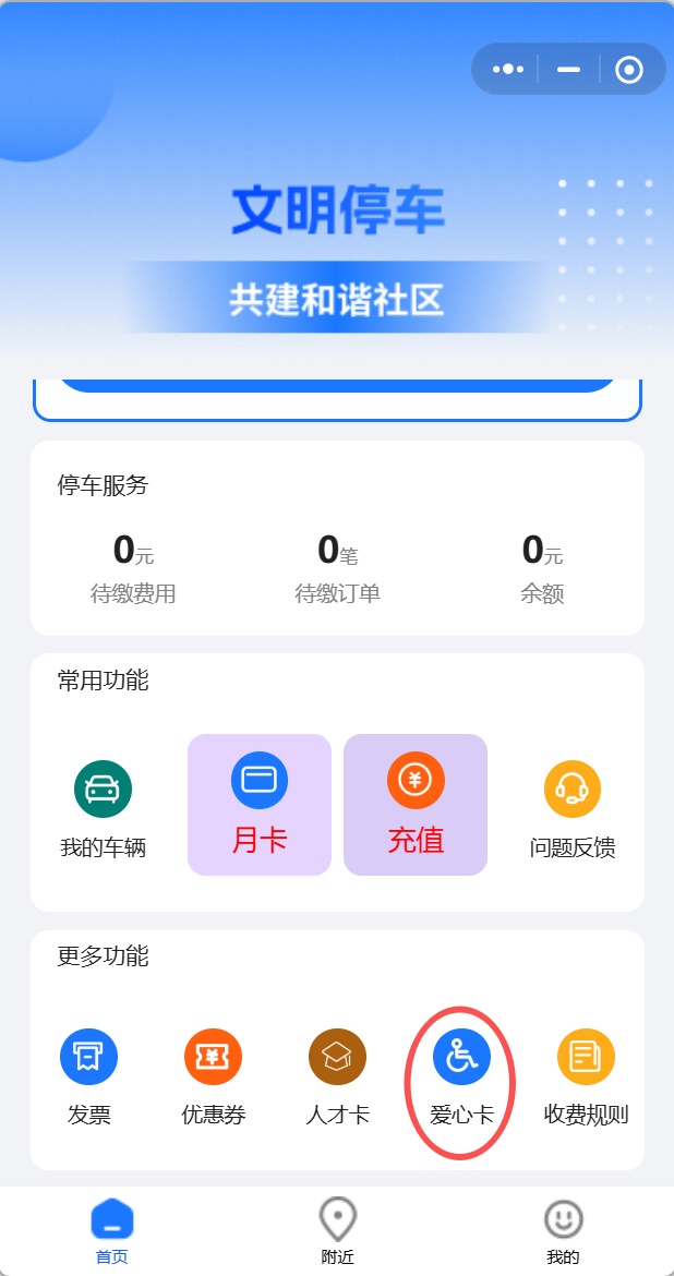二、登录小程序后,主界面找到并打开《爱心卡》图标