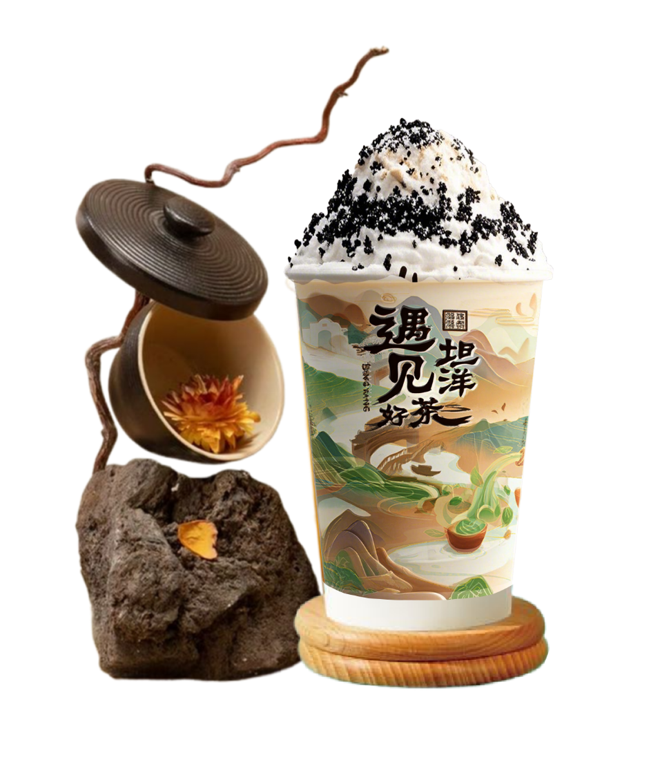 “遇见坦洋”根植于社口镇深厚的茶文化底蕴,推出了一系列令人惊艳的文化爆品。严选世界非遗“坦洋工夫”原叶茶汤,搭配畲族乌饭、古法红糖等省级非遗项目,特调一杯“红糖乌米麻薯奶茶”,红茶醇香打底,手作乌米麻薯糯而不黏,红糖挂壁似闽东梯田,仿佛一杯装下福安的全部山水甜韵。以杯盏为媒,将沉淀百年的非遗技艺与孕育于斯的在地风物巧妙转化,让古老茶文化不再是博物馆里的静态陈列,而成为可品味、可感知、可传播的舌尖体验。
