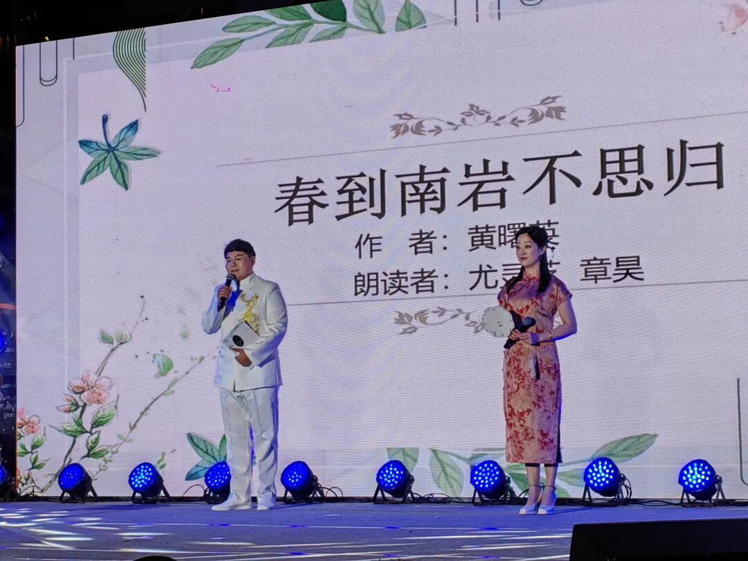 《南岩女子》致敬扎根乡土的奉献者,《南岩夜色》描绘古村的静谧之美,《南岩的雨》诉说岁月的温润诗意。当40余名村民走上台,齐声朗诵“南岩的土地上,勤劳的人们挥洒汗水,把日子种成希望的模样”,质朴的声音凝聚起全村的情感共鸣,将活动推向高潮。