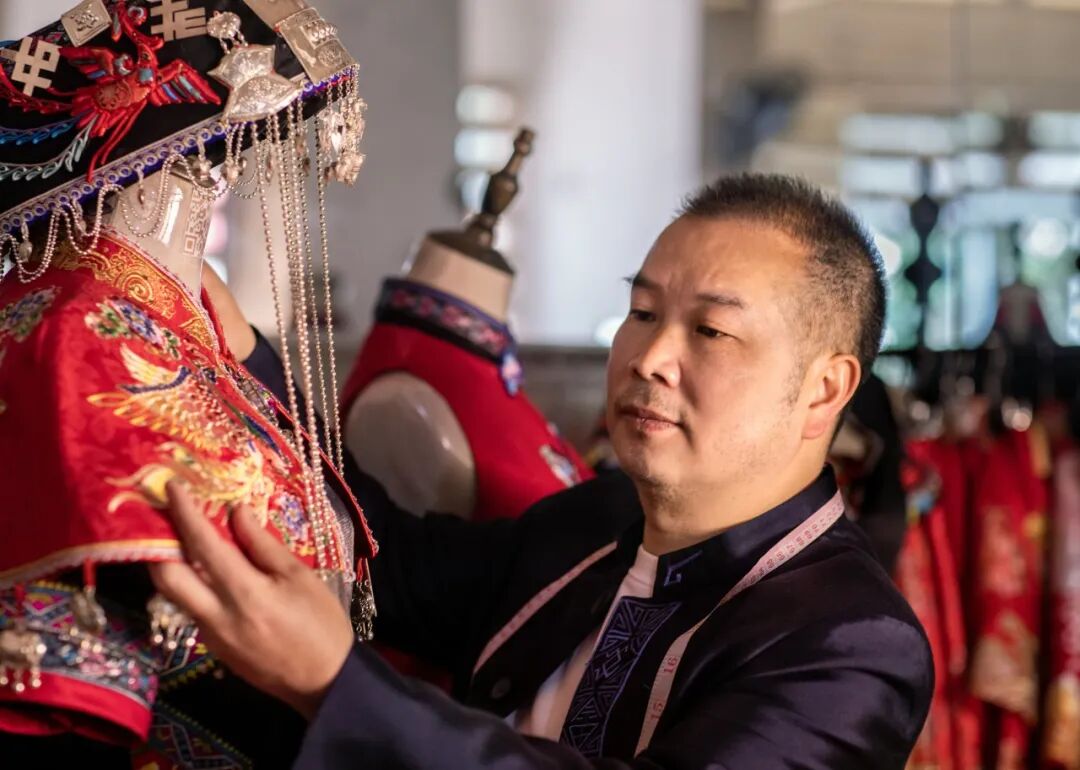 吴廷文,福建省工艺美术大师、宁德市第六批非遗保护项目“闽东畲族传统服饰制作技艺”代表性传承人。数十年如一日深耕畲族服饰设计领域,作品屡获“百花奖”“百鹤奖”等国家级荣誉,其不仅在技艺上追求卓越,更以传承和弘扬畲族文化为己任。