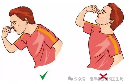 正确做法:坐下,头稍微前倾,双手捏住鼻子5-10分钟,用冷毛巾敷在鼻翼两侧,张口呼吸,不要讲话,出血停止,用温水清洗。如果出血不止,应立即前往医院就医;如反复鼻出血,一定要就医,检查是否有其他疾病。