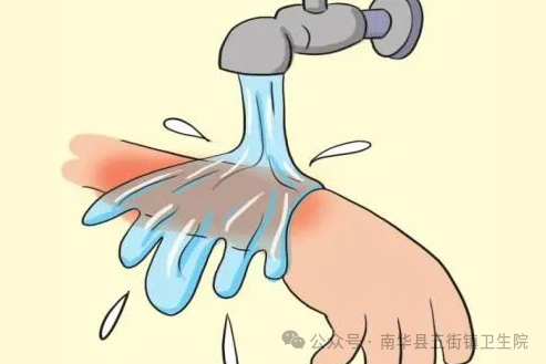 疼痛明显者可持续浸泡在冷水中10-30分钟。如果是烫到身上没办法浸泡的部位,那就用花洒持续冲水也可以,目的就是把皮肤的温度降低。