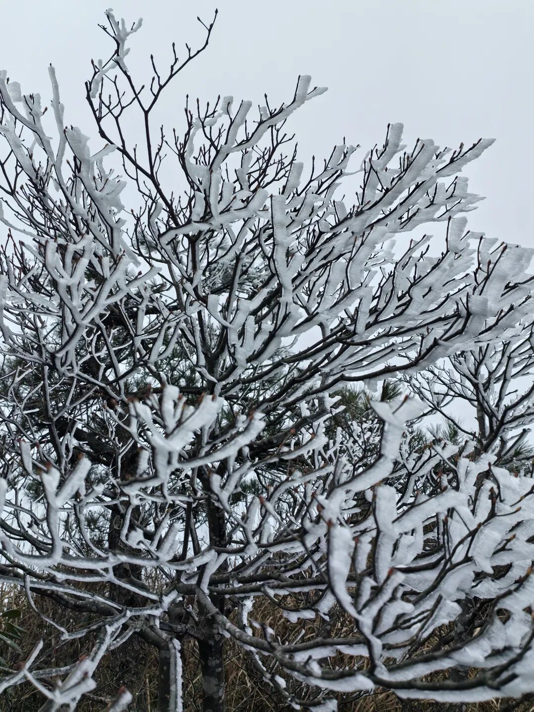 受新的一轮强冷空气影响,21日夜间至22日凌晨,气温骤降至-2至-6度,世界地质公园福安白云山迎来了2026年的第一场雪!琼枝玉树缀满山峦,开启新岁诗意篇章。南方小土豆们期待已久的冰雪世界终于上线,出现了雪凇雾凇冰挂三叠加奇观,只见山顶一夜白了头,一串串晶莹剔透的冰花挂满枝头,如诗如画,美不胜收……整座山峰银装素裹,令人神往,周边游客纷纷上山探访观光游览。