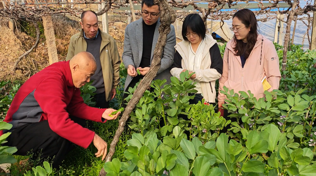 2月14日,市农业农村局组织农技人员到赛岐镇苏阳村,开展葡萄园套种蚕豆测产工作。