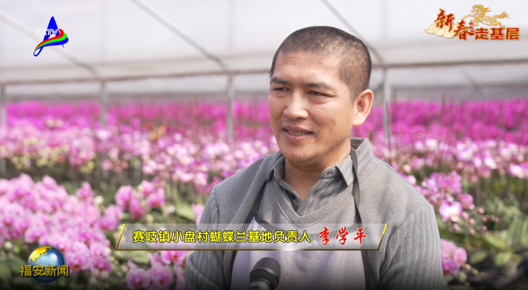 赛岐镇小盘村蝴蝶兰基地负责人 李学平:整年是能销过4万棵,过年期间的上三万棵,量比较大,而且相对时间比较集中,上班基本上都是白天一睁眼7点就开始上班,一直做到晚上12点,偶尔客人要求急要,还要通宵。