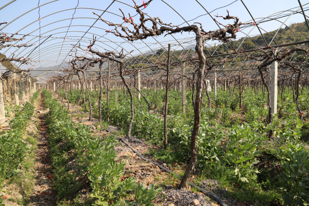 据了解,利用冬春休园季在葡萄园短周期套种蚕豆,既能盘活闲置土地资源,增加葡萄园的单位面积产出效益,蚕豆秸杆留园还能作为绿肥,还田后改善土壤肥力,来年葡萄生长提供优质有机肥。