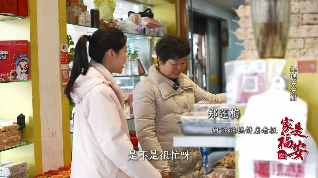 甜滋滋糕饼店老板 郑莲梅:快过年了,大家要买年糖还有祭灶糖就特忙。