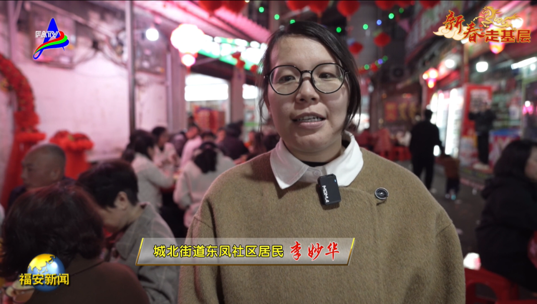 城北街道东凤社区居民 李妙华:“百福宴”是我们居民自发的‘福文化’接力,凝聚了人气和民心,我们邻居间也就是亲人,通过此次活动,我们坐在一起拉家常,非常的温馨。