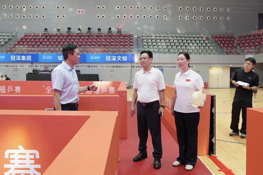 在溪北洋奥体中心,黄其山现场办公,协调推进“全家福安”首届福乒赛总决赛开幕式筹备工作。该赛事于9月初启动,已完成热身赛及小组循环赛,总决赛将于10月1日正式举行。黄其山强调,要将奥体中心作为“城市客厅”精心打造,全面提升周边环境卫生与绿化保洁水平,营造浓厚赛事氛围。同时,要压实安全责任,确保供电保障、消防安全、交通组织等各环节衔接顺畅、保障有力。要系统优化馆内外停车标识与交通指引,保障赛事期间交通顺畅、秩序井然。