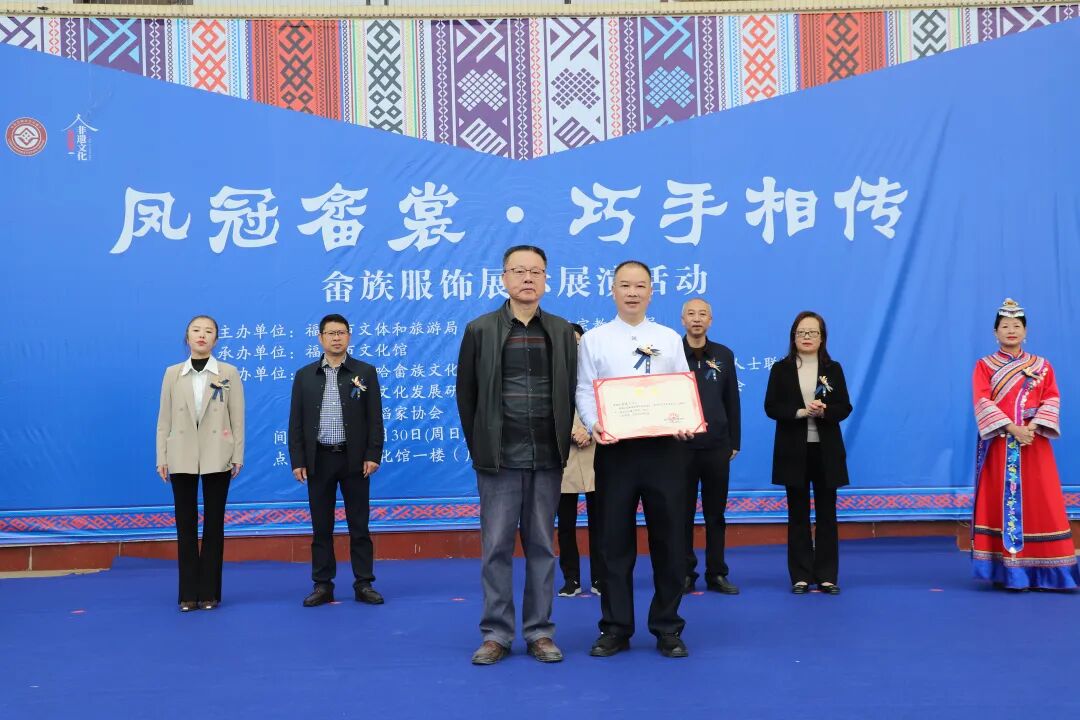 现场举行了“福安市非遗大师课讲师”聘书颁发仪式,省工艺美术大师、“闽东畲族传统服饰制作技艺”代表性传承人吴廷文受聘担任讲师,并为十名“小小非遗传承人”颁发证书。据了解,吴廷文深耕畲族传统服饰制作技艺数十载,其作品曾获中国工艺美术“百花奖”金奖、福建省“争艳杯”金奖等三十余项国家级、省级荣誉,以专业技艺推动畲族服饰文化薪火相传。