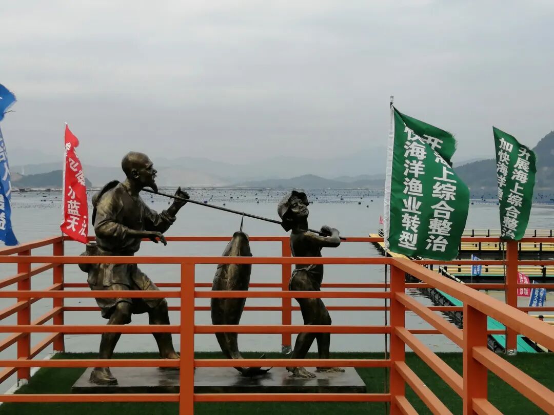 驱车从镇区通往石壁下方向走,跨过一道山脊,在外宅村头的分岔路口向左转。车出半岛山垭口,沿着海岸线自西向东,经东岐、大安、北斗都,便抵达宁海“金牌旅游村”。位于鲈门港区的宁海村,古称 “畚斗坑”。三百多年前,石姓祖先漂泊到此定居,看其形似畚斗遂取村名“畚斗坑” 。尔后,龚和王姓也先后辗转到此,靠讨小海谋生。近年来,宁海村,以发展海洋特色养殖为支柱产业,以渔旅融合发展为新突破口,走出一条“海上田园、多彩渔村””的生态振兴之路。站在“宁海一号”码头,眺望开春的阳光洒在海面上,礁蓝色浮球点点,与蓝天白云相映成辉。彩色随波荡漾,波光粼粼的海水、错落有致的渔舟和渔民们忙碌的身影,共同构成了一幅和谐的春日画卷。沿着彩虹栈道,走进 “海上智慧牧场”。这里不仅搭载了自动投喂、捕捞设施,还配置了视频监控、水质监测、5G通信基站等设施。各种信息和参数实时投放在屏幕上,通过大数据分析,可以实现自动化、智能化渔业养殖。此外,平台搭载了光伏发电设备和储能电池,配备海水淡化装置和污水处理设备,在推进“低碳生活”的同时,还推动清洁能源环保。当地林长辉老师介绍:“随着近岸环境越来越好,附近海域多次出现白海豚的身影。中华白海豚为国家一级保护动物,也被称为‘水中大熊猫’,对海洋水质环境十分敏感,被视为衡量海洋生态环境的活指标。”