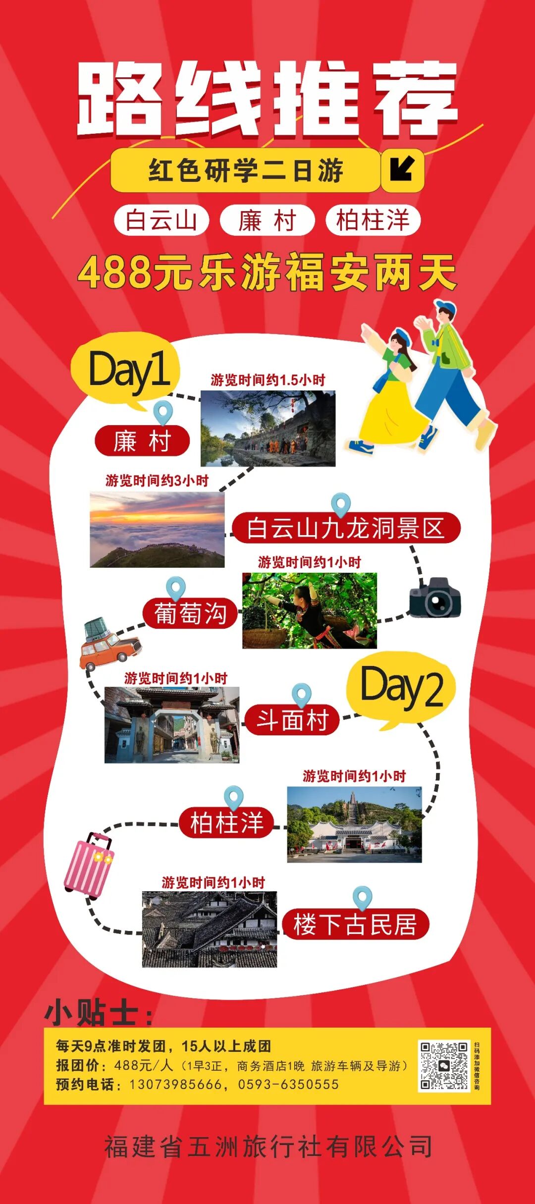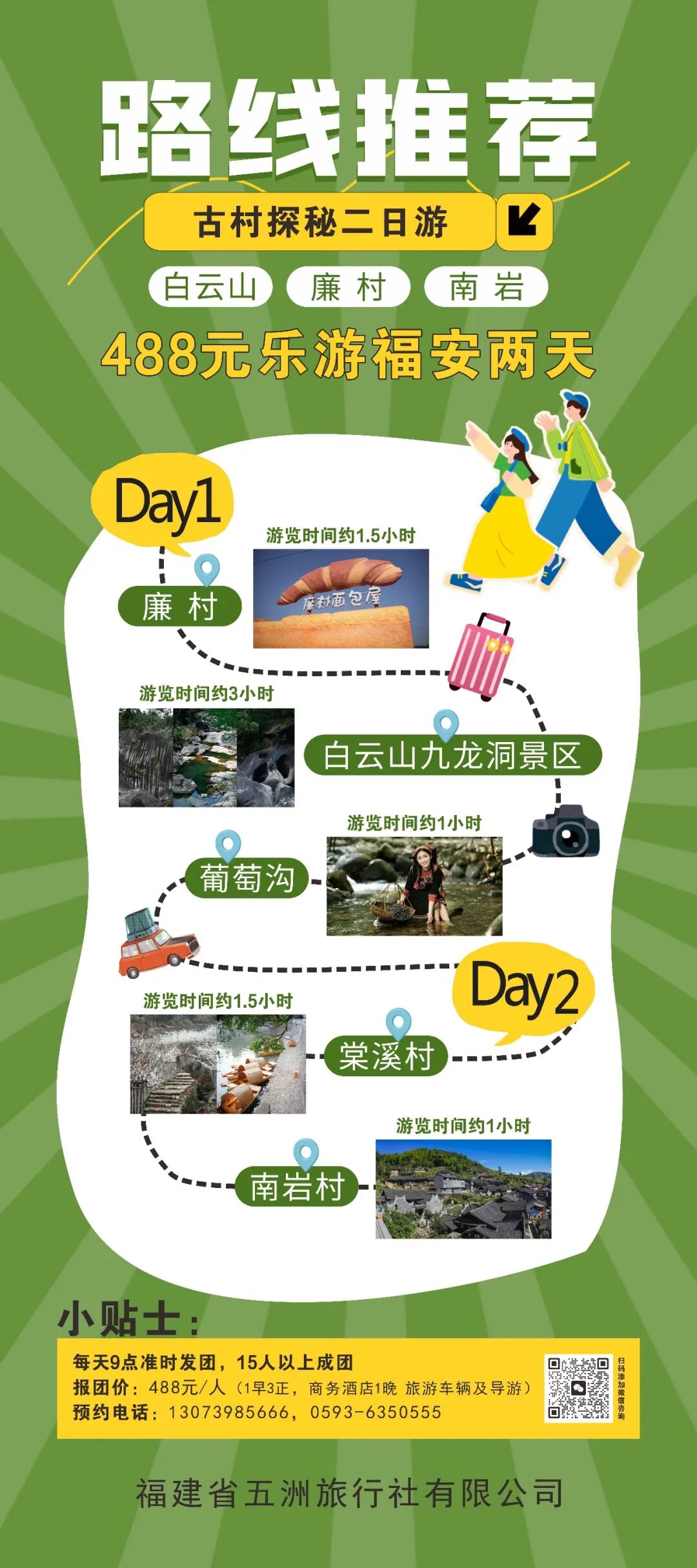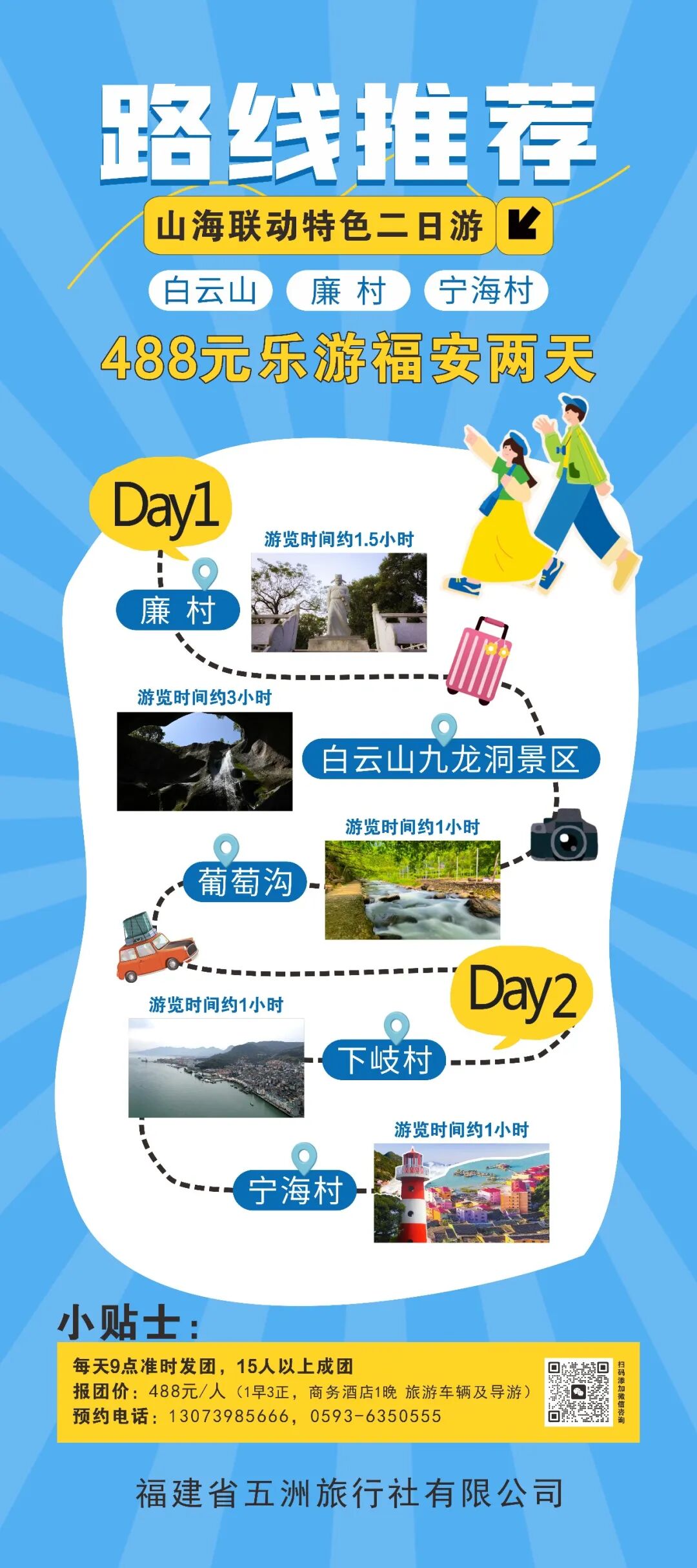 为了让大家深度玩转福安,我们还联合福建省五洲旅行社,推出3条488元/人的精品二日游路线,覆盖山海风光、红色文化、古村秘境,凭赛事票根即可报名,一站式解锁福安的多元魅力!