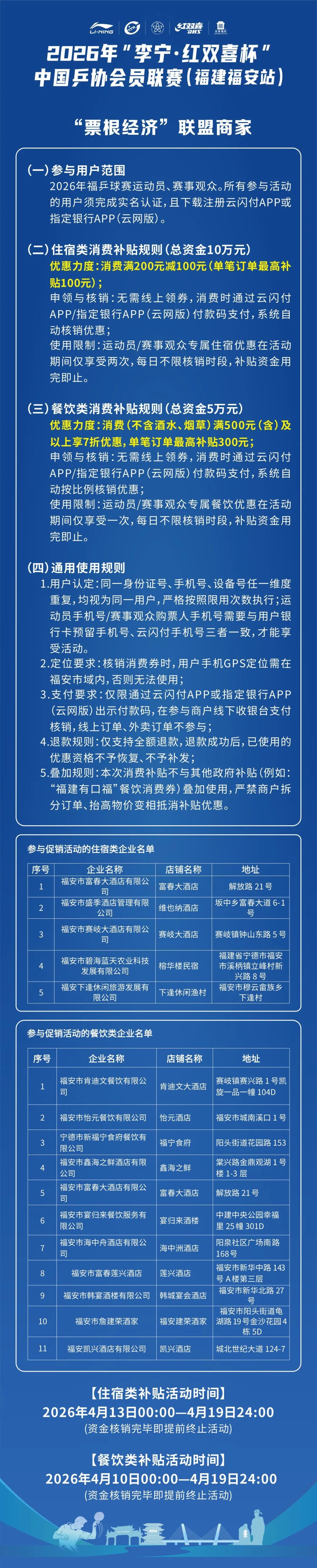 2026年“李宁·红双喜杯”中国乒协会员联赛(福安分站赛)还有许多精彩福利!票根在手,优惠全有!可别浪费了手中的票根,使用方法如下,赶紧去一一解锁吧!