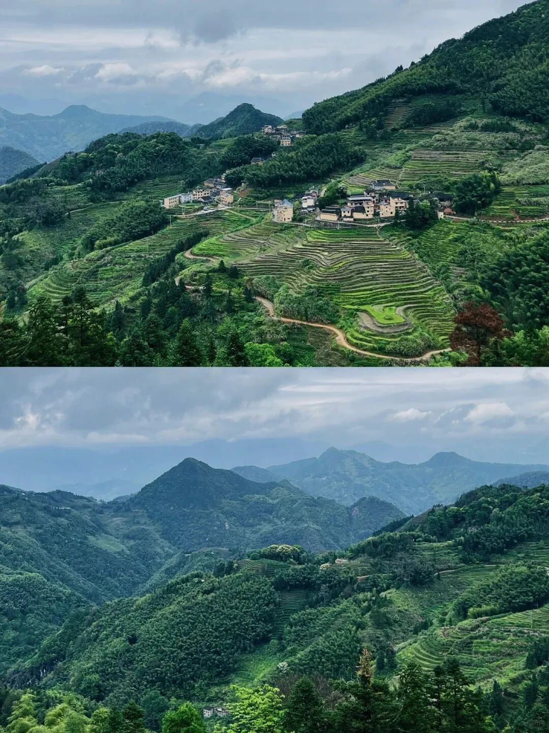 层层梯田从山脚铺展至山顶