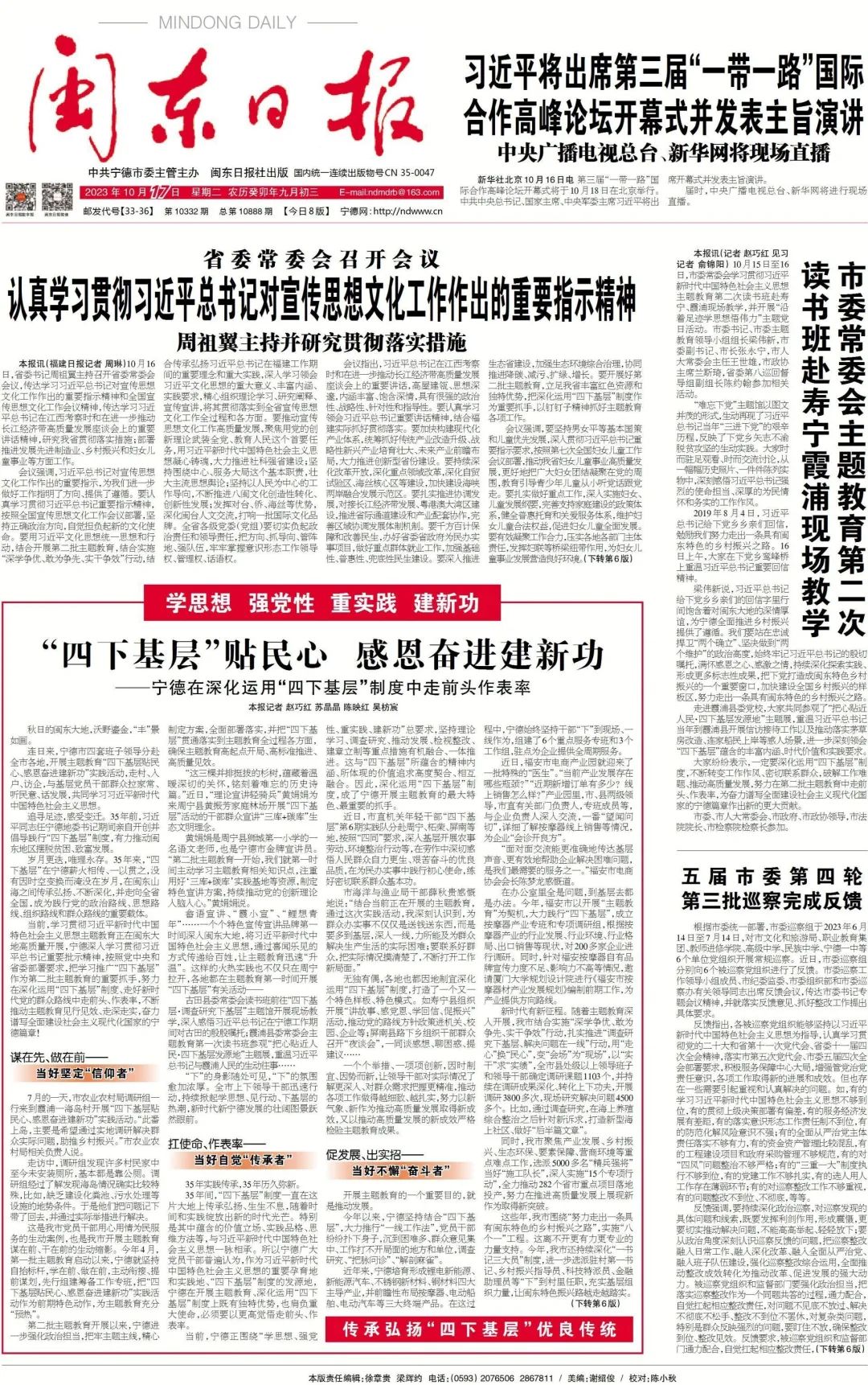主题教育丨宁德:“四下基层”贴民心 感恩奋进建新功