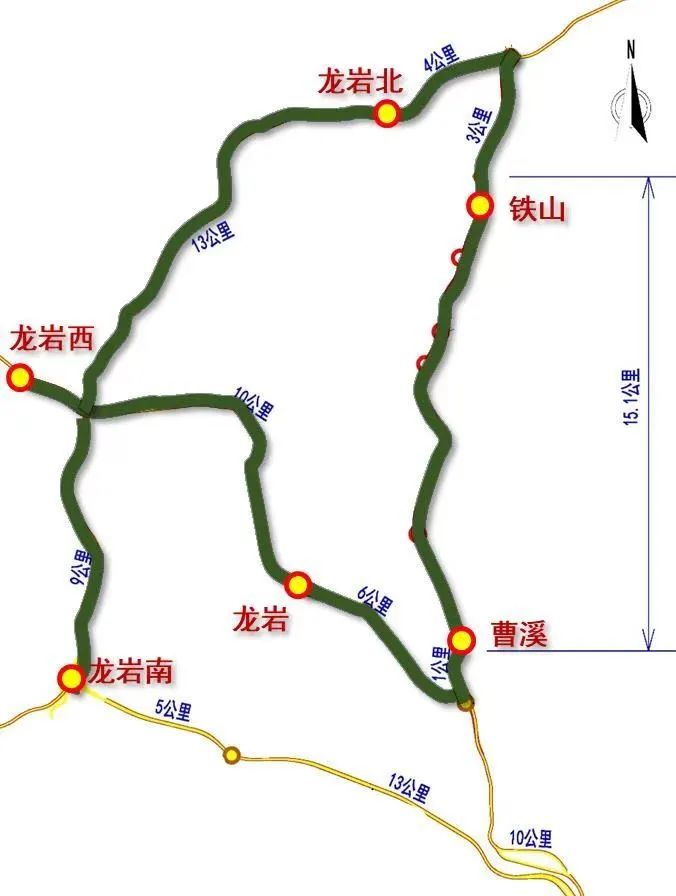 龙岩、龙岩西、龙岩南、龙岩北、曹溪(含主线站和匝道站)、铁山等6个收费站间任意两个的通行区间。