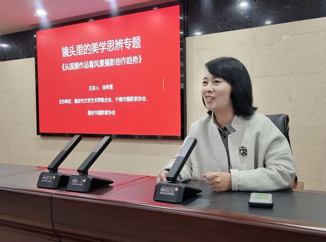 11月24日,福建师范大学美术学院教授、中国摄影家协会第十届理事、理论委员会委员、福建省摄影家协会副主席徐希景在我市图书馆开展了题为《镜头里的美学思辨专题——从国展作品看风景摄影创作趋势》的摄影讲座。本次讲座由福安市文学艺术界联合会、宁德市摄影家协会、福安市摄影家协会主办。