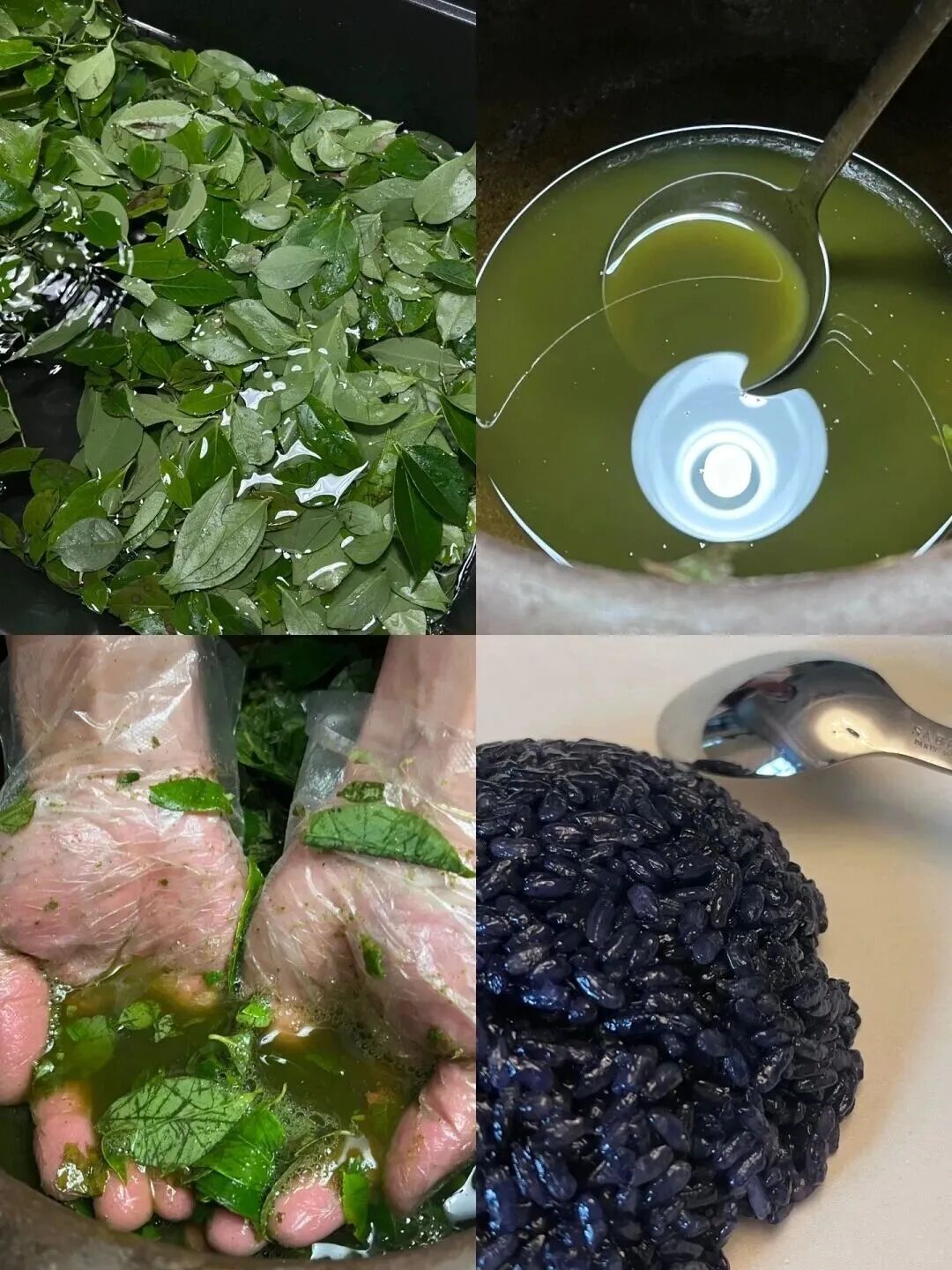 跟着畲族非遗传承人沿古道采摘乌稔树叶、捣汁、 浸泡糯米,全程复刻古法工艺,畲族山歌相伴,尝一口自带草木清香的乌米饭,甜润回甘~
