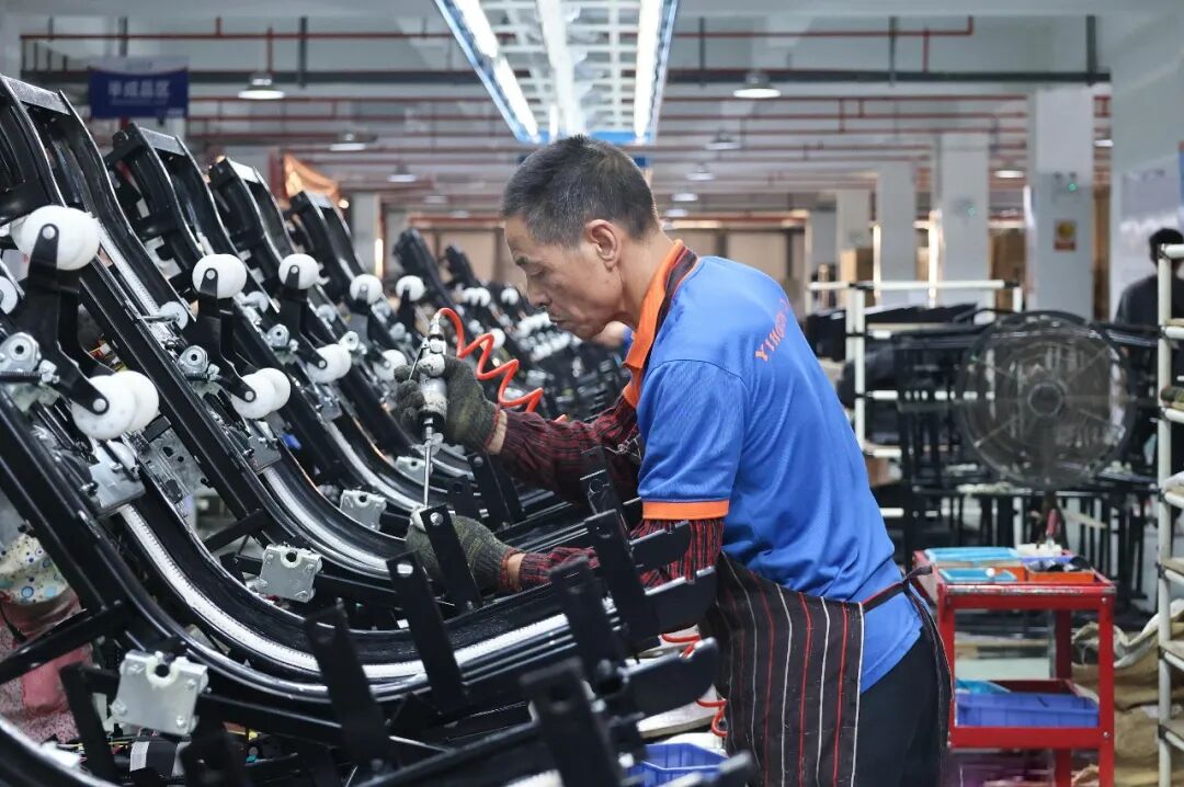 怡和生产线上,工人在组装按摩椅。陈雅芳 摄