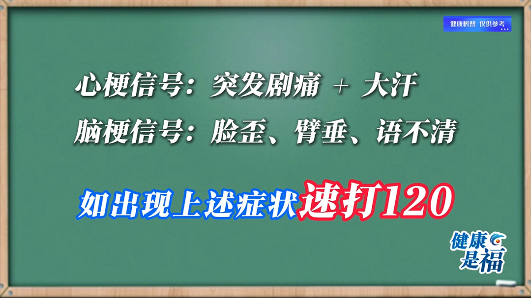 心梗信号:突发剧痛+大汗;脑梗信号:脸歪、臂垂、语不清,速打120!