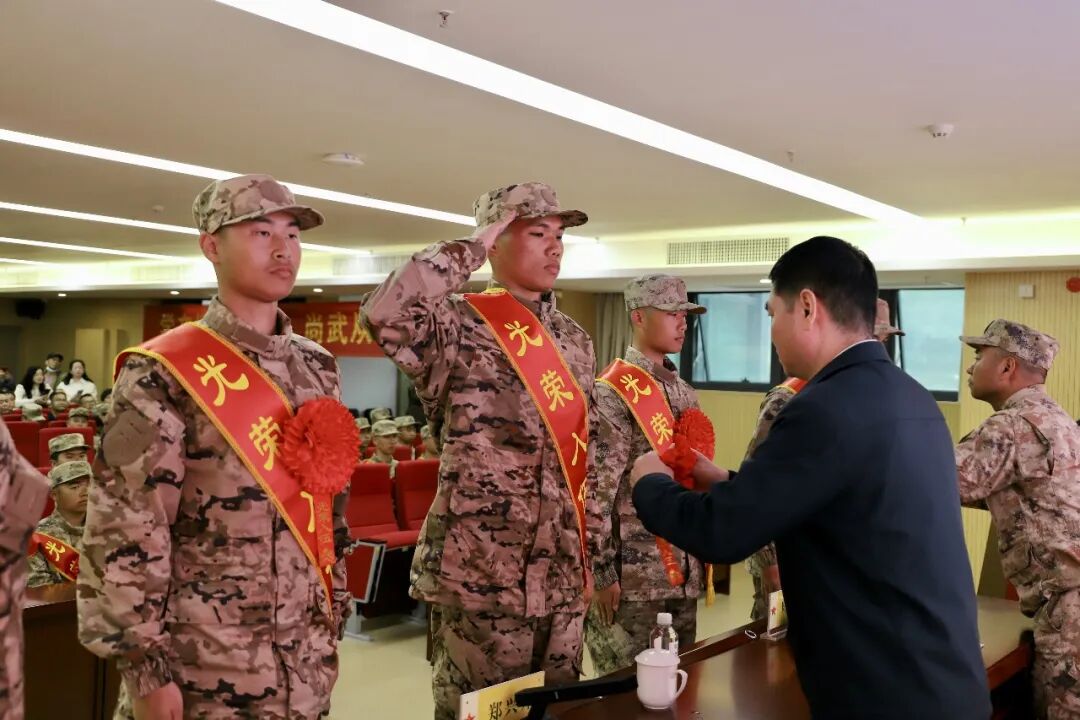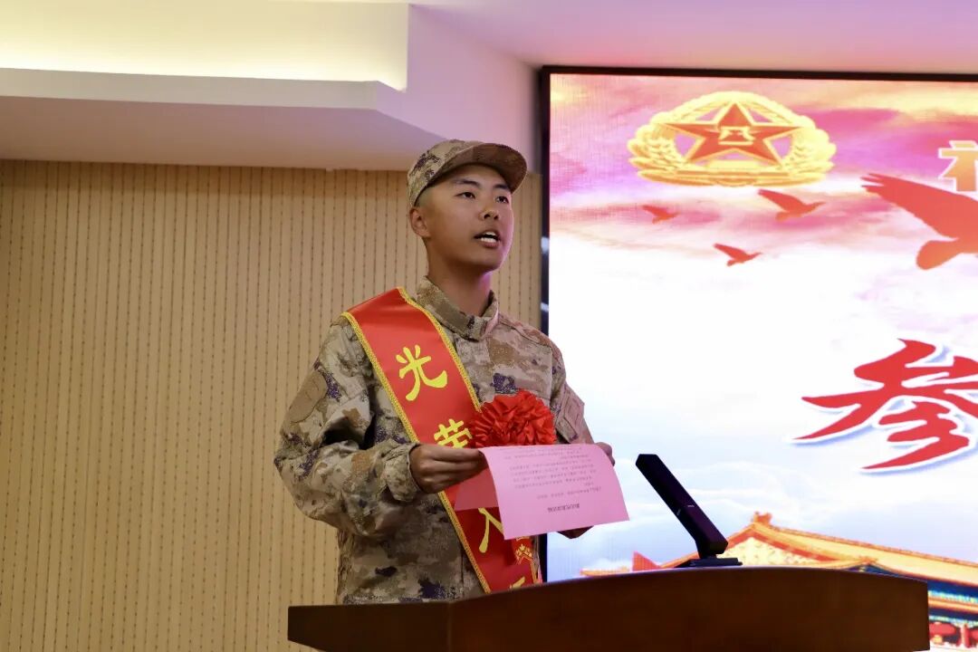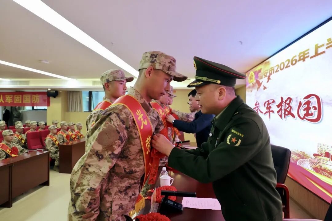 欢送仪式在嘹亮的国歌齐唱声中拉开帷幕。新兵们身着崭新迷彩服、肩披红绶带,整齐列队,身姿挺拔、目光坚定,脸上洋溢着对军营生活的向往与报效祖国的热情。与会领导为新兵代表佩戴了大红花,勉励他们将这份光荣转化为苦练本领、保家卫国的强大动力。