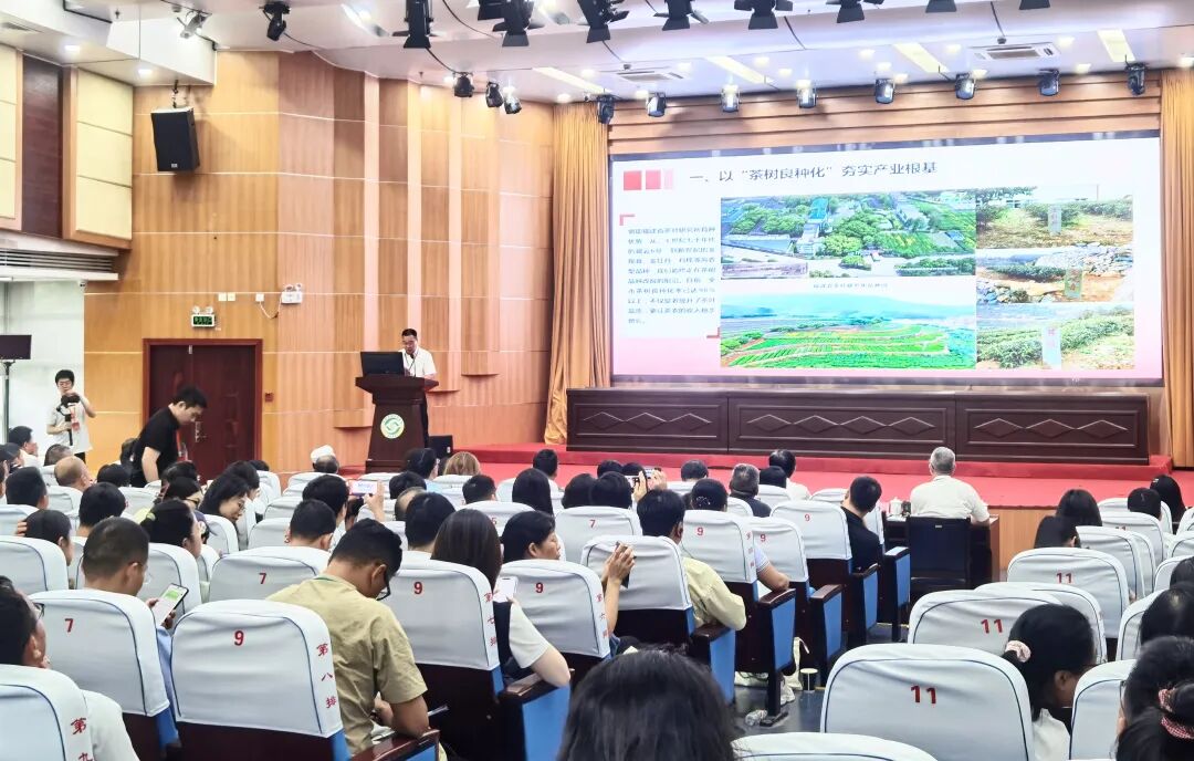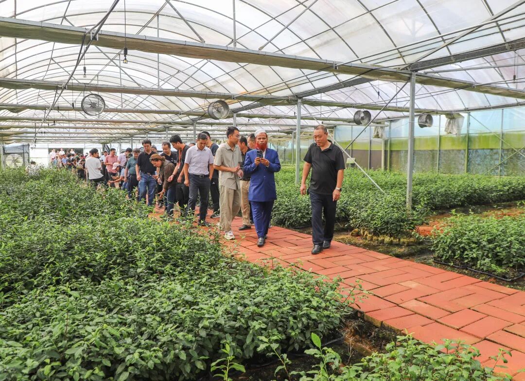 考察团首站抵达甘棠镇国家区域性良种繁育基地,现场察看茶苗种植、种苗培育等情况。现场交流气氛热烈,代表团成员对甘棠茶苗产业的创新发展模式表现出浓厚兴趣,就茶苗的适应性栽培、技术推广模式等频频提问,基地负责人一一给予详尽解答。