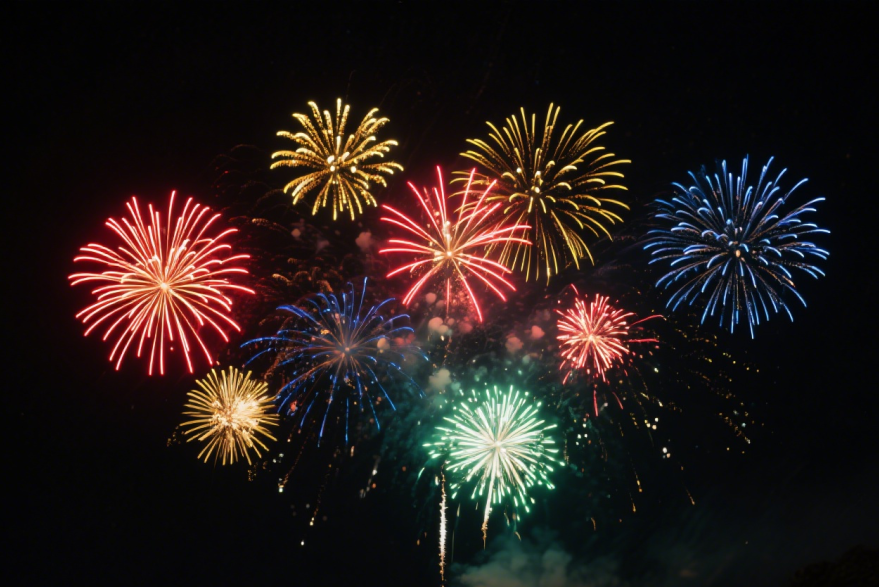金色瀑布、七彩牡丹般的烟花次第绽放