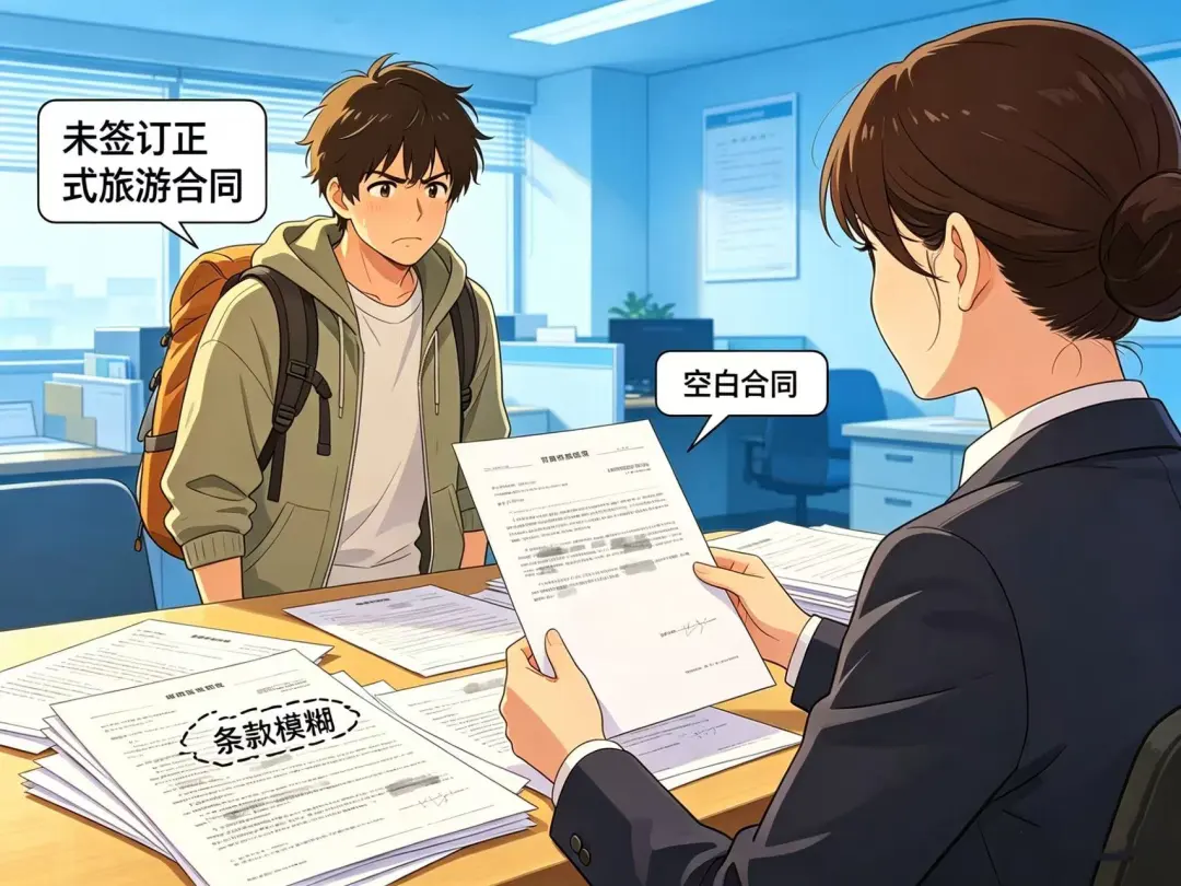 未签订正式旅游合同,或提供空白合同、条款模糊(如未明确住宿标准、购物停留时间、交通方式、自费项目等核心条款),会导致法律责任不明确,遇旅行社擅自变更行程、增加购物环节、转团拼团等问题,游客权益难以保障。