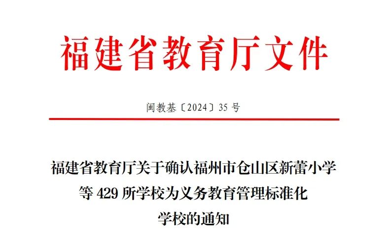 在学校自评、县级核查推荐、市级评估申报的基础上,省教育厅组织专家审核和实地抽查,确认429所学校为福建省义务教育管理标准化学校。其中,福安市穆阳第二中心小学、福安市经济开发区大留小学、福安市第一中心冠杭校区、福安市民族职业中学确认通过义务教育管理标准化学校评估。2024年福建省义务教育