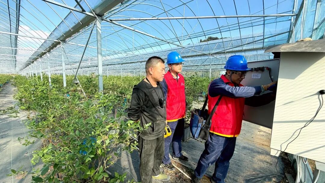 4月1日,国网福安市供电公司组织国网福建电力(福安闽东之光)“双满意”共产党员服务队,深入上白石镇财洪村雨田山庄蓝莓种植专业合作社,对蓝莓种植智能大棚内的用电设施进行“体检”,用可靠的电力助力蓝莓产业增效、果农增收。