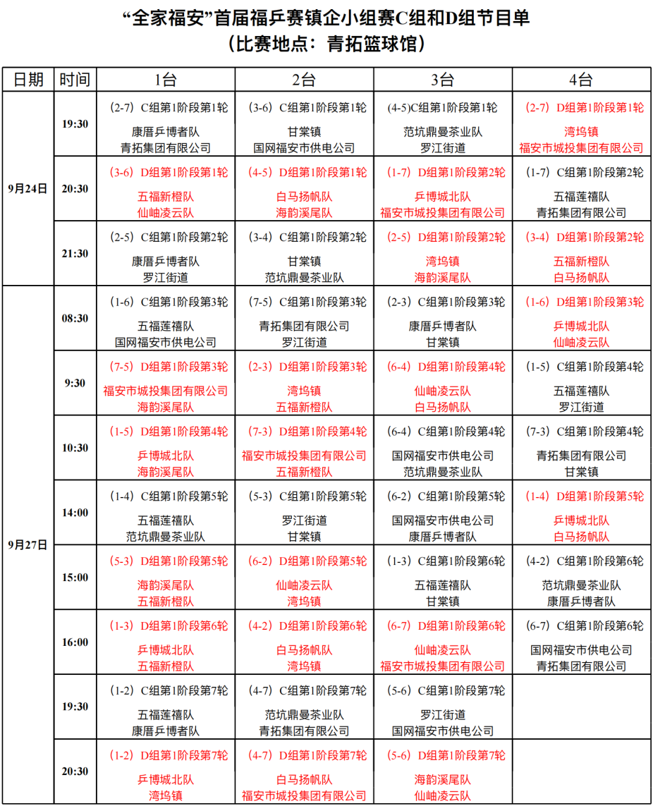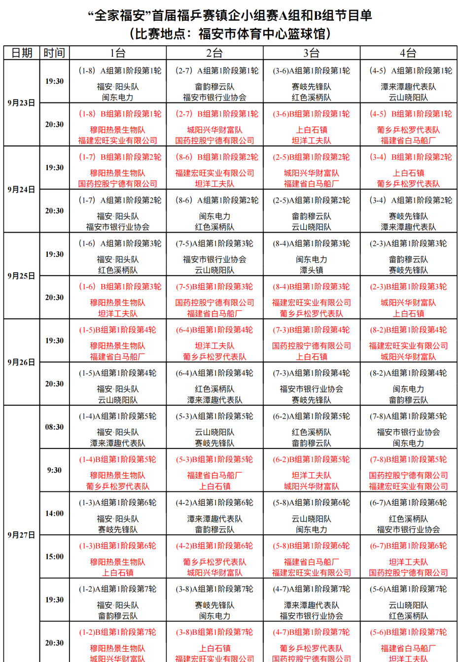 “全家福安”首届福乒赛体育场赛区镇企小组赛