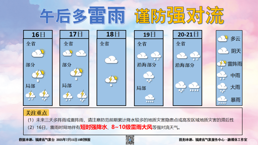 未来三天福建多雷雨天气