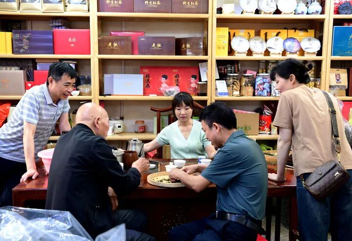 58岁的茶农刘金龙打理着300亩茶园,他把直播间搬进茶园,向“家人们”讲解“晒青”“摇青”等制茶工艺,在社交媒体吸引10多万名粉丝,年销售额的近一半来自网络。