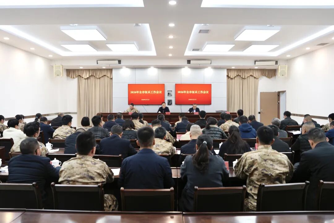 市征兵工作领导小组副组长、市委常委、常务副市长黄凌主持会议并宣读2025年征兵工作先进单位和先进个人表扬通报;市征兵工作领导小组副组长、市政府党组成员、市人武部政委吴威讲评2025年征兵工作,并具体部署2026年征兵工作。2025年未完成征兵任务的乡镇作表态发言。