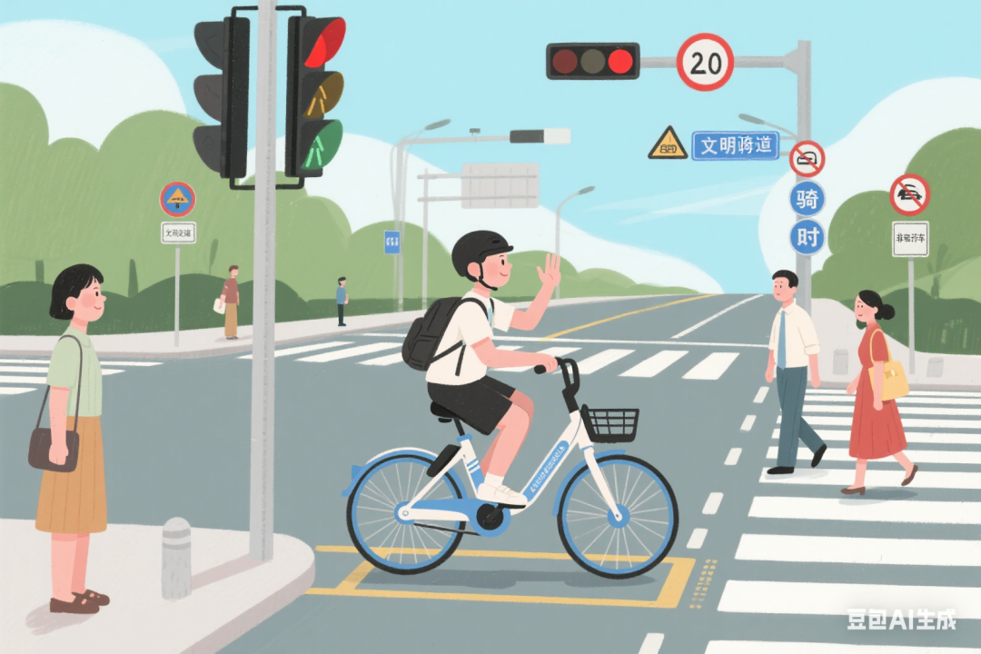 骑行时需严格遵守交通法规,在非机动车道内行驶,不逆行、不闯红灯、不超速。转弯前注意观察路况并伸手示意,避免突然变道。经过路口或人流密集区域时减速慢行,礼让行人,共同维护道路秩序。