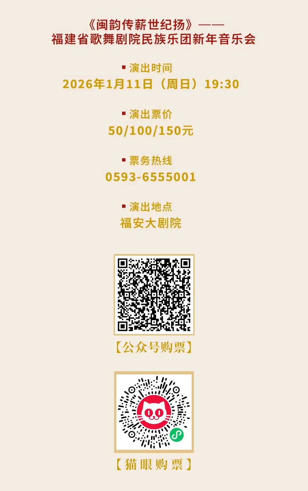 1月11日,福建省歌舞剧院民族乐团邀您共赏民乐盛宴!