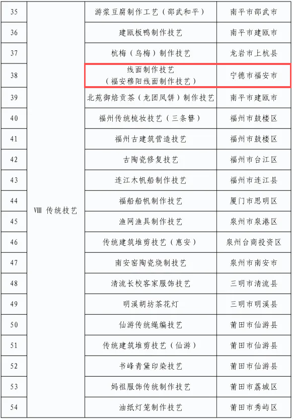 福建省第八批省级非物质文化遗产代表性