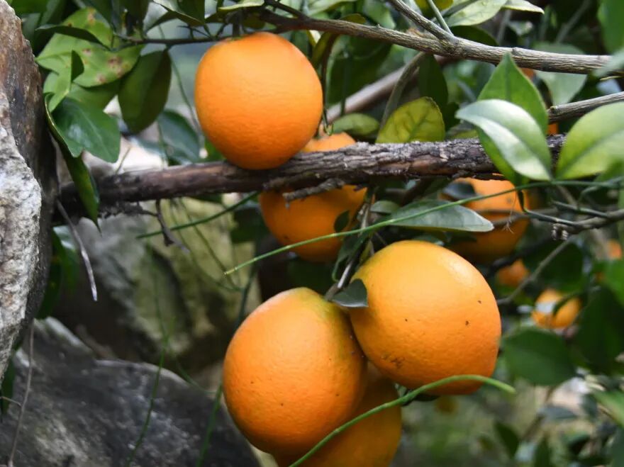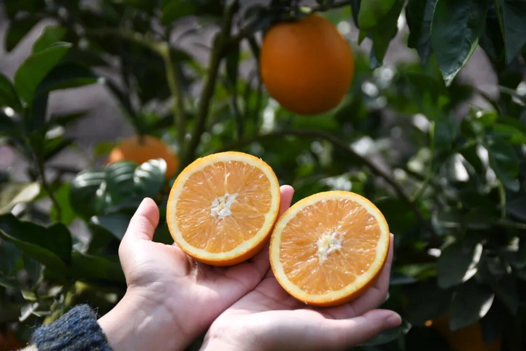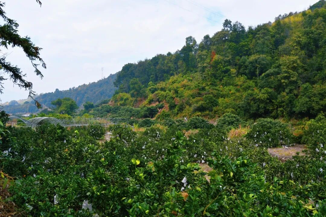 防虫袋裹着沉甸甸的果实垂挂枝头