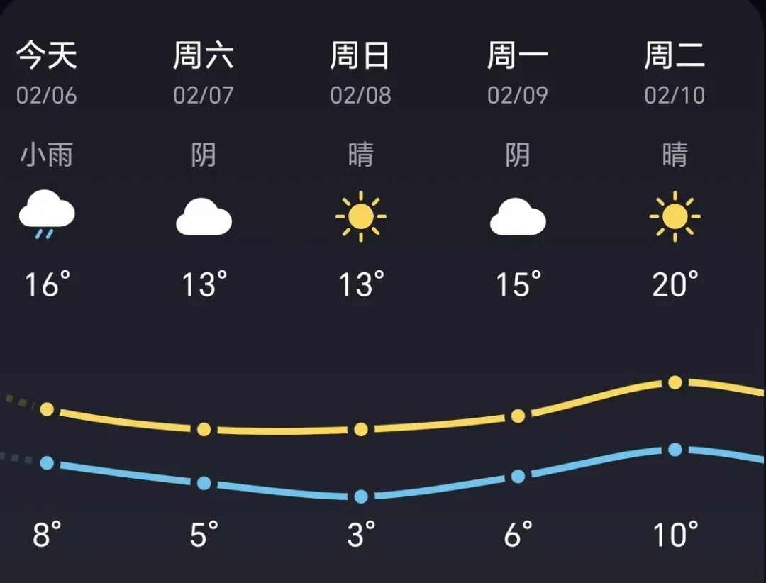 未来十天我市有两次小雨过程,分别为6~7日和9~10日,其余时段多云到阴。6~9日受强冷空气影响,我市将出现沿海大风、强降温和低温霜冻天气。