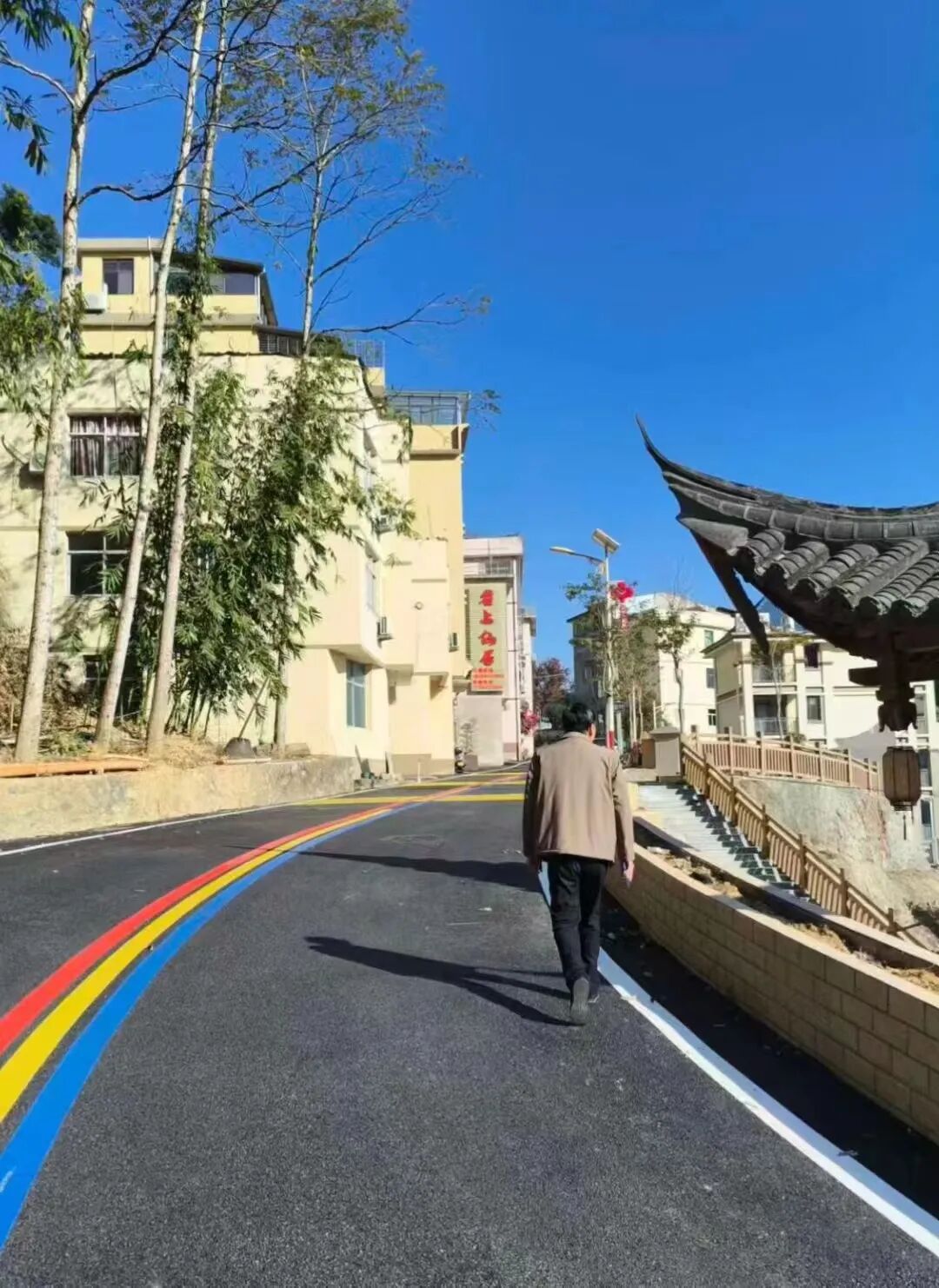 仙岩村,坐落于仙岫山东麓,是纯少数民族村落,下辖叠石、对面村、朝阳新村、南垄4个自然村,距离市区5公里,风光秀丽、环境清幽,却因村道坑坑洼洼,长期发展受到限制。今年,该路被列入坂中畲族乡老旧小区交通提升建设项目,实施“白改黑”工程。经过精心施工,如今道路平坦,行车舒适性与安全性大幅提升。与此同时,道路还进行了创新设计,以红、黄、蓝三色搭配的标线绘制出彩虹路,独特的设计为村道增添了生动色彩。沿着彩虹路漫步,仿佛踏入了一幅流动的画卷,错落有致的畲家小院、生动的畲族绘画墙,为游客带来了丰富有趣的游玩体验。