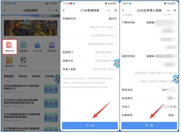 进入服务后点击“资格申请”,按照系统要求将信息填写完整(温馨提示:请按实填写,若选择错误,将影响您的申请进度),填写完后点击下一步。