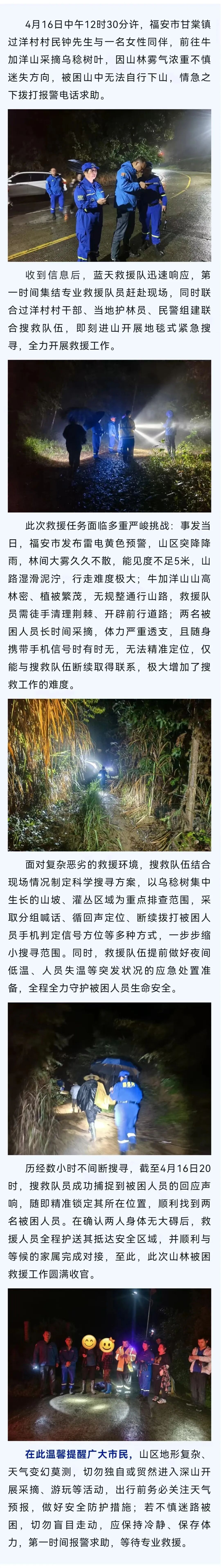 福安甘棠群众进山采摘遇大雾被困,多方联动紧急救援