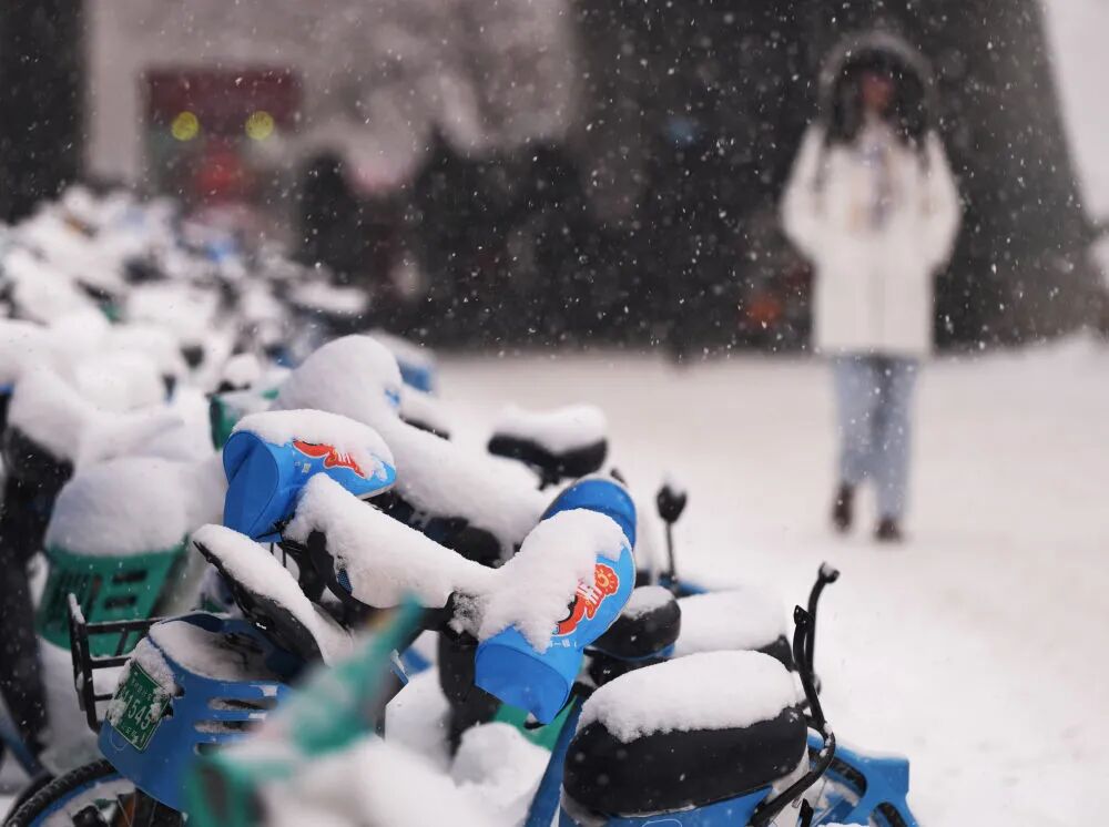市民在沈阳街头冒雪出行。新华社记者 李钢 摄